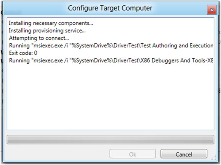 Expect this process to take several minutes, including a few reboots of the target machine. If you receive any access denied errors during this process, make sure that you have UAC disabledon the target and enabledon the host. Also be sure that you’ve run VS elevated on the host machine.